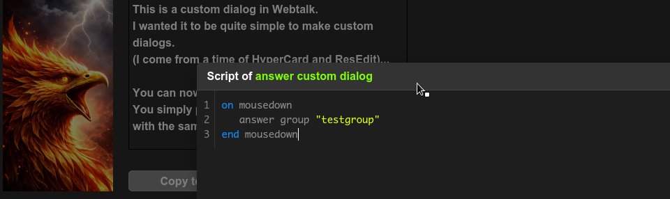 However, the great thing about hyperTalk (and webtalk), is that it can also be quite flexible: