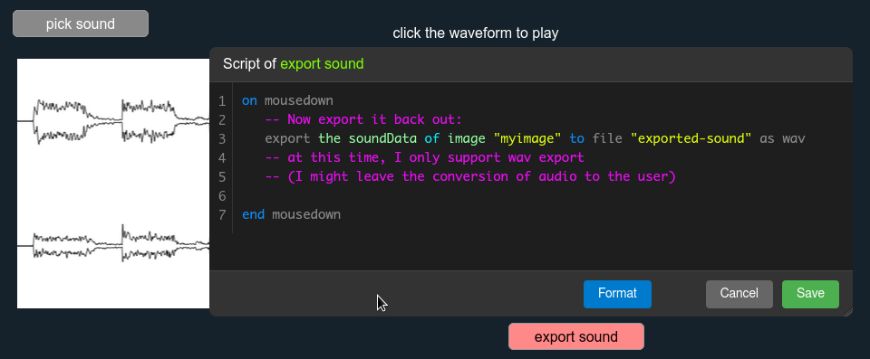 I also added the ability to export sounds: exporting sounds back to wav files.