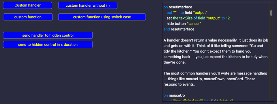 Whereas, if I want to do that in HyperTalk, I'd be able to use: