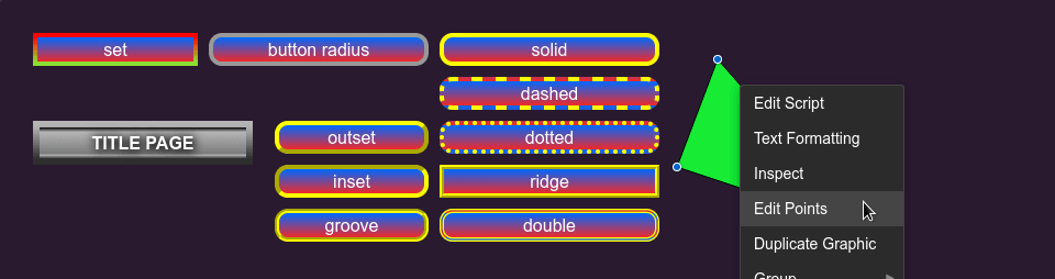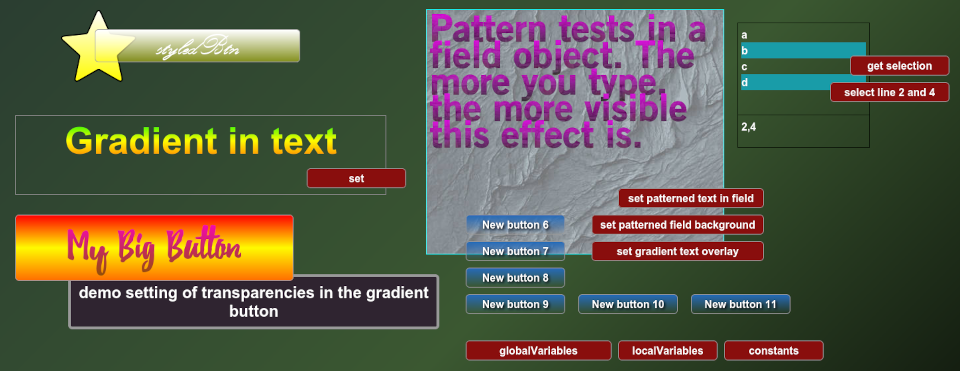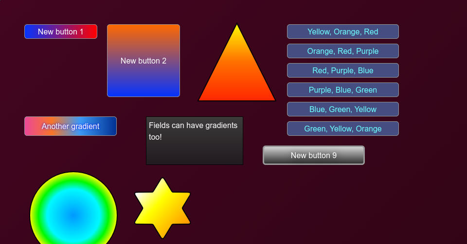 This week, I've added gradient-fills which can be set on buttons, graphics, and the background of fields:
