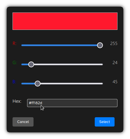 I was messing about with the answer colour (or color, whichever you prefer). I added the web hex colour to the dialog: