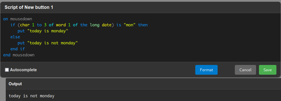 Something else that I thought might be handy to add. If you reference an object by name that does not exist, yet you have something similar already on the card, the interpreter can now prompt you so you are aware of any naming mismatch (case sensitive errors)